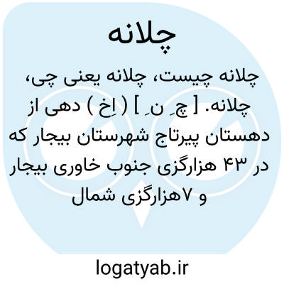 چلانه. [ چ ِ ن ِ ] ( اِخ ) دهی از دهستان پیرتاج شهرستان بیجار که در 43 هزارگزی جنوب خاوری بیجار و 7هزارگزی شمال خاوری سلامت آباد و راه شوسه واقع است. تپه ماهوری و معتدل است و 115 تن سکنه دارد. آبش از چشمه و رودخانه تلوار. محصولش غلات و لبنیات. شغل اهالی زراعت، گله داری و بافتن قالیچه و راهش مالرو است، لیکن در فصل تابستان از سلامت آباد با اتومبیل هم میتوان بدانجا رفت. ( از فرهنگ جغرافیایی ایران ج 5 ).