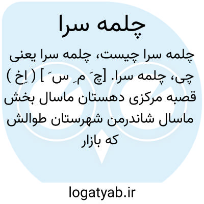 چلمه سرا. [چ َ م ِ س َ ] ( اِخ ) قصبه مرکزی دهستان ماسال بخش ماسال شاندرمن شهرستان طوالش که بازار ماسال در اراضی این قصبه واقع شده و مسافت آن تا رضوانده 21 هزارگز وتا طاهرگوراب 9 هزارگز است و برسر راه مالرو عمومی رشت به خلخال قرار دارد. جلگه و مرطوب است و 379 تن سکنه دارد. آبش از رودخانه ماسال، محصولش برنج و ابریشم، شغل اهالی زراعت و دکانداری و راهش اتومبیل رو است. در این آبادی به تازگی بناهای خوبی ساخته شده ودارای بخشداری، اداره آمار، فرهنگ، دبستان 6 کلاسه و پزشک، بهداری است.روزهای شنبه بازار عمومی در این محل تشکیل میشود. ( از فرهنگ جغرافیایی ایران ج 2 ).