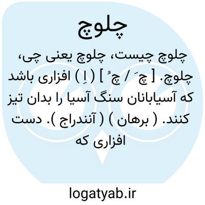 چلوچ. [ چ َ / چ ُ ] ( اِ ) افزاری باشد که آسیابانان سنگ آسیا را بدان تیز کنند. ( برهان ) ( آنندراج ). دست افزاری که سنگ آسیا را بدان تیز کنند. ( ناظم الاطباء ). چاکوچ و چکوچ. افزاری سرتیز و دسته دار که آسیابانان برای تیز کردن سنگ آسیا بکاربرند. و رجوع به چاکوچ و چکوچ شود.