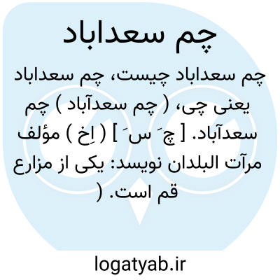 ( چم سعدآباد ) چم سعدآباد. [ چ َ س َ ] ( اِخ ) مؤلف مرآت البلدان نویسد: یکی از مزارع قم است. ( ازمرآت البلدان ج 4 ص 261 ).