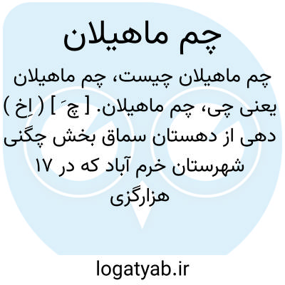 چم ماهیلان. [ چ َ ] ( اِخ ) دهی از دهستان سماق بخش چگنی شهرستان خرم آباد که در 17 هزارگزی جنوب باختری سراب دوره و 12 هزارگزی جنوب راه خرم آباد به کوهدشت واقع است. جلگه و معتدل است و 60 تن سکنه دارد. آبش از رودخانه کشکان. محصولش غلات و لبنیات. شغل اهالی زراعت و گله داری. صنایع دستی چادربافی و راهش مالرو است. ساکنان آبادی از طایفه شاه کرمی بوده در زمستان به قشلاق میروند. ( از فرهنگ جغرافیایی ایران ج 6 ).