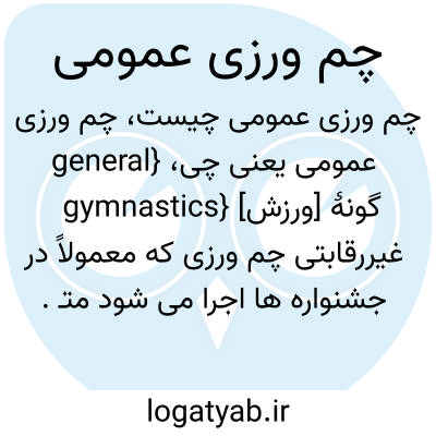 فرهنگستان زبان و ادب {general gymnastics} [ورزش] گونۀ غیررقابتی چم ورزی که معمولاً در جشنواره ها اجرا می شود متـ. ژیمناستیک عمومی