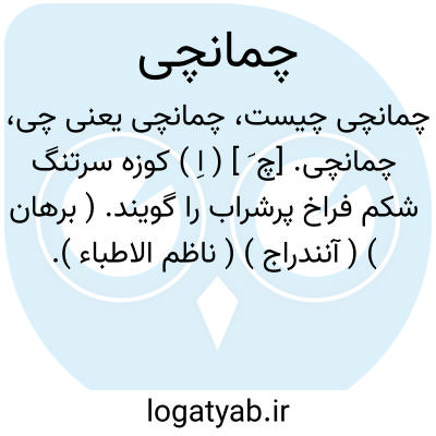 چمانچی. [چ َ ] ( اِ ) کوزه سرتنگ شکم فراخ پرشراب را گویند. ( برهان ) ( آنندراج ) ( ناظم الاطباء ). کوزه سرتنگ بزرگ شکم که در آن شراب کنند. ( رشیدی ) ( انجمن آرا ذیل چمانه ). تنگ شراب. ابریق شراب. صراحی. و رجوع به چمان شود.