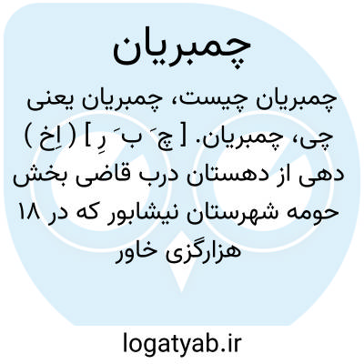 چمبریان. [ چ َ ب َ رِ ] ( اِخ ) دهی از دهستان درب قاضی بخش حومه شهرستان نیشابور که در 18 هزارگزی خاور نیشابور واقع است. جلگه و معتدل است. و 97 تن سکنه دارد. آبش از قنات. محصولش غلات، بنشن و میوه. شغل اهالی زراعت وراهش مالرو است. ( از فرهنگ جغرافیایی ایران ج 9 ).