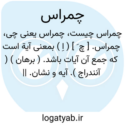 چمراس. [ چ َ ] ( اِ ) بمعنی آیة است که جمع آن آیات باشد. ( برهان ) ( آنندراج ). آیه و نشان. || کرامت. معجزه. ( ناظم الاطباء ).