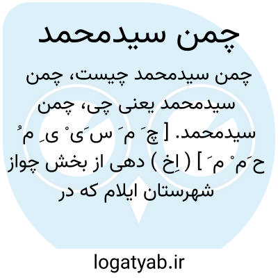 چمن سیدمحمد. [ چ َ م َ س َی ْ ی ِ م ُ ح َم ْ م َ ] ( اِخ ) دهی از بخش چواز شهرستان ایلام که در 46 هزارگزی باخترچوار و 30 هزارگزی باختر راه شوسه ایلام به شاه آبادواقع است. کوهستانی و سردسیر است و 80 تن سکنه دارد. آبش از چشمه. محصولش غلات. شغل اهالی زراعت و گله داری و قالی بافی و راهش مالرو است. ساکنان این آبادی چادرنشین میباشند. ( از فرهنگ جغرافیایی ایران ج 5 ).