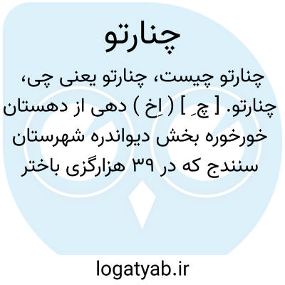 چنارتو. [ چ ِ ] ( اِخ ) دهی از دهستان خورخوره بخش دیواندره شهرستان سنندج که در 39 هزارگزی باختر دیواندره، کنار راه مالرو دیواندره به خورخوره واقع است. کوهستانی و هوایش سردسیر است و 90 تن سکنه دارد. آبش از چشمه و رودخانه. محصولش غلات و حبوبات و شغل اهالی زراعت، گله داری، بافتن قالیچه و جاجیم وراهش مالرو است. ( از فرهنگ جغرافیایی ایران ج 5 ).