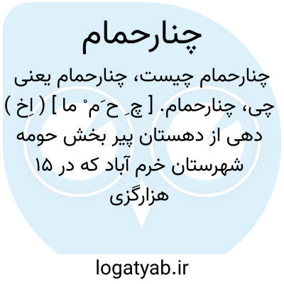 چنارحمام. [ چ ِ ح َم ْ ما ] ( اِخ ) دهی از دهستان پیر بخش حومه شهرستان خرم آباد که در 15 هزارگزی شمال خرم آباد و 12 هزارگزی خاور راه شوسه خرم آباد به کرمانشاه واقع است. کوهستانی و هوایش معتدل است و 280 تن سکنه دارد. آبش از قنات. محصولش غلات، صیفی و لبنیات. شغل اهالی زراعت، گله داری، بافتن فرش، جل و سیاه چادر و راهش مالرو است. ساکنان آبادی از طایفه بیرالوند میباشند. ( از فرهنگ جغرافیایی ایران ج 6 ).