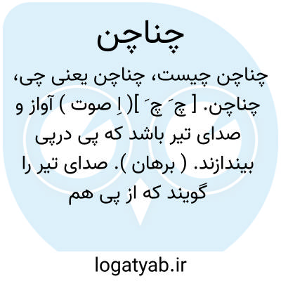 چناچن. [ چ َ چ َ ]( اِ صوت ) آواز و صدای تیر باشد که پی درپی بیندازند. ( برهان ). صدای تیر را گویند که از پی هم بیندازند و آنرا شپاشاپ نیز گویند. ( جهانگیری ). آواز و صدای پی درپی تیر انداختن. ( انجمن آرا ) ( آنندراج ). آواز و صدای تیر پی درپی انداخته شده. ( ناظم الاطباء ). چخاچخ. چقاچاق. چقاچق: ز بیم چناچن که آمد ز تیر کفن گشت در زیر جوشن حریر.نظامی ( از جهانگیری ).رجوع به چقاچاق و چقاچق شود.