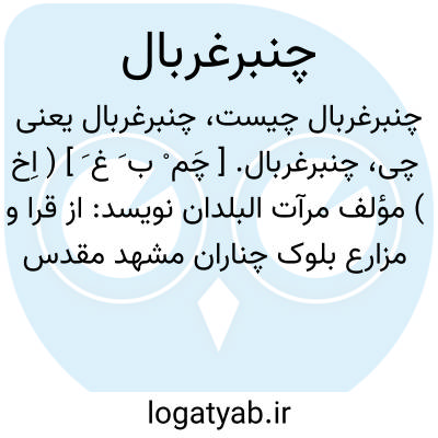 چنبرغربال. [ چَم ْ ب َ غ َ ] ( اِخ ) مؤلف مرآت البلدان نویسد: از قرا و مزارع بلوک چناران مشهد مقدس میباشد که در سمت قوچان واقع است. ( از مرآت البلدان ج 4 ص 274 ). در فرهنگ جغرافیایی آمده است: دهی ازدهستان چناران بخش حومه شهرستان مشهد میباشد که در44 هزارگزی شمال باختری مشهد و در 3 هزارگزی شمال راه شوسه مشهد به قوچان واقع است. جلگه ای است با هوای معتدل و 133 تن سکنه دارد. آبش از قنات. محصولش غلات و چغندر. شغل اهالی زراعت، مالداری و قالیچه بافی وراهش مالرو است. ( از فرهنگ جغرافیایی ایران ج 9 ).
