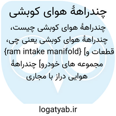 {ram intake manifold} [قطعات و مجموعه های خودرو] چندراهۀ هوایی دراز با مجاری متعدد که در سرعت هایی معین با افزایش میزان مخلوط سوخت و هوا به تغذیۀ سیلندرها کمک می کند متـ. چندراهۀ هوای ضربه قوچی