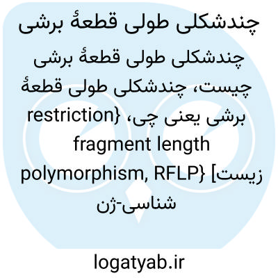 {restriction fragment length polymorphism, RFLP} [زیست شناسی-ژن شناسی و زیست فنّاوری] گوناگونی طول قطعات دِنا که در نتیجۀ برش دِنا با درون نوکلئاز ویژه بُر به دست می آید متـ. چندشکلی دِنایی DNA polymorphism