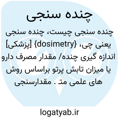 {dosimetry} [پزشکی] اندازه گیری چنده/ مقدار مصرف دارو یا میزان تابش پرتو براساس روش های علمی متـ. مقدارسنجی 1