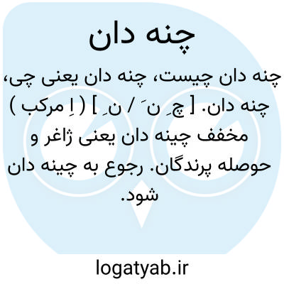 لغت نامه دهخدا چنه دان. [ چ ِ ن َ / ن ِ ] ( اِ مرکب ) مخفف چینه دان یعنی ژاغر و حوصله پرندگان. رجوع به چینه دان شود.