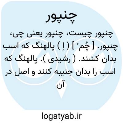 چنپور. [ چُم ْ ] ( اِ ) پالهنگ که اسب بدان کشند. ( رشیدی ). پالهنگ که اسب را بدان جنیبه کنند و اصل در آن پالاهنگ است و اصطلاح این زمان یعنی یدک کش و در عربی مقود گویند. ( انجمن آرا ). چنبور. افسار. رجوع به پالهنگ و چنبور شود.