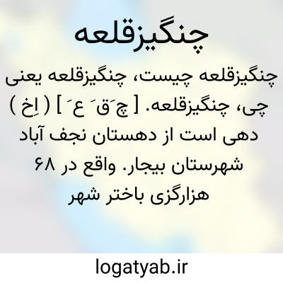 چنگیزقلعه. [ چ َق َ ع َ ] ( اِخ ) دهی است از دهستان نجف آباد شهرستان بیجار. واقع در 68 هزارگزی باختر شهر بیجار و یک هزارگزی جنوب شوسه بیجار - سنندج. در جلگه قرار گرفته. معتدل و دارای 201 تن سکنه میباشد. از چشمه مشروب میشود. از محصولاتش غلات و لبنیات است. اهالی با کشاورزی و گله داری، قالیچه، گلیم و جاجیم بافی گذران میکنند. راهش مالرو است. قلعه خرابه ای از آثار قدیم نزدیک آبادی وجود دارد. ( از فرهنگ جغرافیایی ایران ج 5 ).