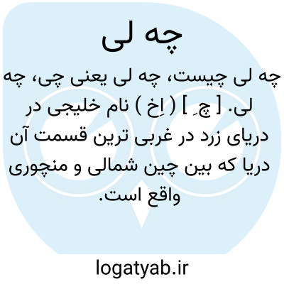 چه لی. [ چ ِ ] ( اِخ ) نام خلیجی در دریای زرد در غربی ترین قسمت آن دریا که بین چین شمالی و منچوری واقع است.