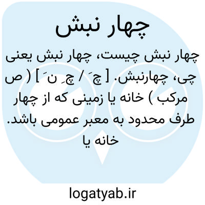 چهارنبش. [ چ َ / چ ِ ن َ ] ( ص مرکب ) خانه یا زمینی که از چهار طرف محدود به معبر عمومی باشد. خانه یا زمینی که از چهار جهت به خیابان یا کوچه پیوندد. || در اصطلاح بنایان آجری یا خشتی که هر چهار سوی قطر آن هموار و بی شکستگی باشد. ( یادداشت مؤلف ).