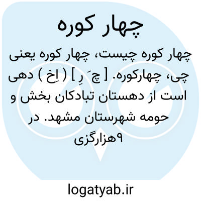چهارکوره. [ چ َ رِ ] ( اِخ ) دهی است از دهستان تبادکان بخش و حومه شهرستان مشهد. در 9هزارگزی شمال خاروی مشهد و 500هزارگزی خاور راه مشهد به کلات واقع است. جلگه و معتدل است، 118 تن سکنه دارد. از رودخانه آبیاری میشود. محصولش غلات، و شغل اهالی زراعت و مالداری است. ( از فرهنگ جغرافیایی ایران ج 9 ).