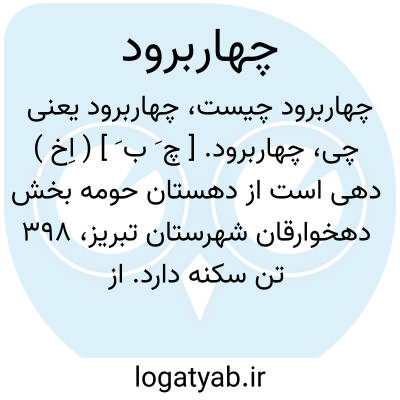 چهاربرود. [ چ َ ب َ ] ( اِخ ) دهی است از دهستان حومه بخش دهخوارقان شهرستان تبریز، 398 تن سکنه دارد. از رودخانه چهاربرود آبیاری میشود. محصولش غلات، حبوبات، توتون و بادام است. شغل اهالی زراعت و گله داری است. ( از فرهنگ جغرافیایی ایران ج 4 ).