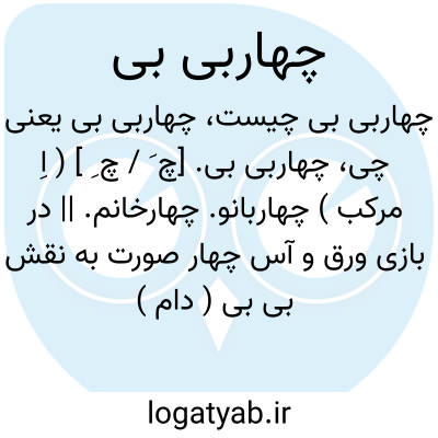 چهاربی بی. [چ َ / چ ِ ] ( اِ مرکب ) چهاربانو. چهارخانم. || در بازی ورق و آس چهار صورت به نقش بی بی ( دام ) هست که بر حسب رنگ و نوع بر هر یک بی بی خاج. ( گشنیز ) ( ترفل )، بی بی سیاه خال ( پیک )، بی بی دل ( کُر ) و بی بی خشت ( کارو ) اطلاق کنند.
