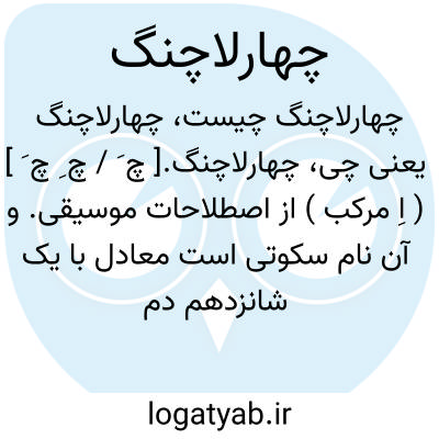 چهارلاچنگ.[ چ َ / چ ِ چ َ ] ( اِ مرکب ) از اصطلاحات موسیقی. و آن نام سکوتی است معادل با یک شانزدهم دم سکوتها در موسیقی مانند نقطه و ویرگولهای کلام اند و معمولاً در وسط خط حامل قرار میگیرند و مانند نوتها ممکن است یک یا چند نقطه داشته باشند. رجوع به ذیل کلمه چنگ شود.