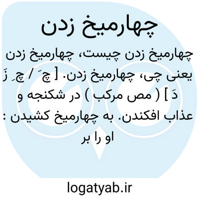 چهارمیخ زدن. [ چ َ / چ ِ زَ دَ ] ( مص مرکب ) در شکنجه و عذاب افکندن. به چهارمیخ کشیدن: او را بر در مدرسه او که در ختن ساخته بود چهارمیخ زدند. ( جهانگشای جوینی ).