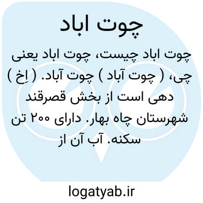 ( چوت آباد ) چوت آباد. ( اِخ ) دهی است از بخش قصرقند شهرستان چاه بهار. دارای 200 تن سکنه. آب آن از قنات و محصولش غلات، برنج، خرما و لبنیات است. ( از فرهنگ جغرافیائی ایران ج 8 ).