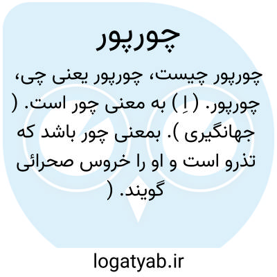 چورپور. ( اِ ) به معنی چور است. ( جهانگیری ). بمعنی چور باشد که تذرو است و او را خروس صحرائی گویند. ( برهان ) ( از آنندراج ) ( ناظم الاطباء ). رجوع به چور شود.