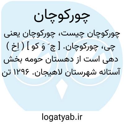 چورکوچان. [ چ َ وَ کو ] ( اِخ ) دهی است از دهستان حومه بخش آستانه شهرستان لاهیجان. 1296 تن سکنه دارد. آب آن از حشمت رود و رودخانه سفیدرود. محصولاتش برنج و ابریشم است. ( از فرهنگ جغرافیایی ایران ج 2 ).