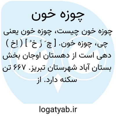 چوزه خون. [ چ َ زَ خ ُ ] ( اِخ ) دهی است از دهستان اوجان بخش بستان آباد شهرستان تبریز. 667 تن سکنه دارد. از اوجای چای آبیاری میشود. محصولش غلات، سیب زمینی و یونجه است. ( از فرهنگ جغرافیائی ایران ج 4 ).