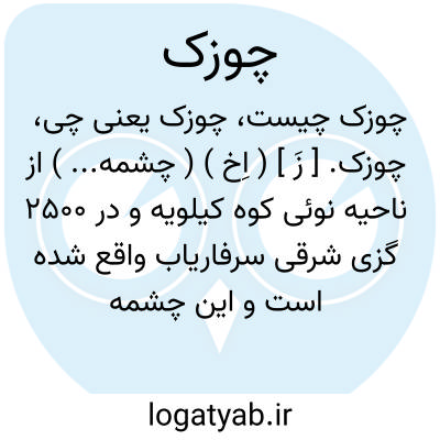 چوزک. [ زَ ] ( اِخ ) ( چشمه... ) از ناحیه نوئی کوه کیلویه و در 2500 گزی شرقی سرفاریاب واقع شده است و این چشمه از درز سنگی درآید که مانند شرم زنان باشد. ( فارسنامه ناصری ).