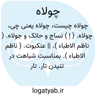 چولاه. ( اِ ) نساج و حائک و جولاه. ( ناظم الاطباء ). || عنکبوت. ( ناظم الاطباء ). بمناسبت شباهت در تنیدن تار. تار تنه. تار تنگ. ظاهراً تلفظی یا صورتی از جولاه است. در سایر فرهنگها دیده نشد.