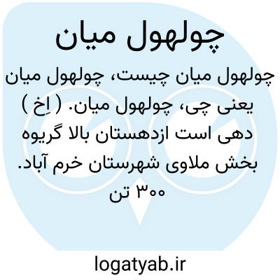 چولهول میان. ( اِخ ) دهی است ازدهستان بالا گریوه بخش ملاوی شهرستان خرم آباد. 300 تن سکنه دارد. از رودخانه چولهول آبیاری میشود. محصول عمده اش غلات است. ( از فرهنگ جغرافیایی ایران ج 6 ).