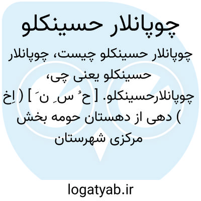 چوپانلارحسینکلو. [ ح ُ س ِ ن َ ] ( اِخ ) دهی از دهستان حومه بخش مرکزی شهرستان اهر. دارای 119 تن سکنه. آب آن از چشمه. محصولش غلات و حبوبات است. ( از فرهنگ جغرافیایی ایران ج 4 ).