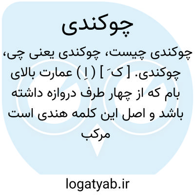 چوکندی. [ ک َ ] ( اِ ) عمارت بالای بام که از چهار طرف دروازه داشته باشد و اصل این کلمه هندی است مرکب از چو بمعنی عدد چهار و کهند بکاف مخلوط الهاء بمعنی حصه و طرف و یای نسبت و معنی ترکیبی آن چیزی باشد که بچهار طرف نسبت داشته باشد وبمعنی مأخوذ مجازی است که شهرت گرفته: