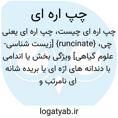 {runcinate} [زیست شناسی- علوم گیاهی] ویژگی بخش یا اندامی با دندانه های ارّه ای یا بریده شانه ای نامرتب و لَپ های خمیده به عقب در گیاهان