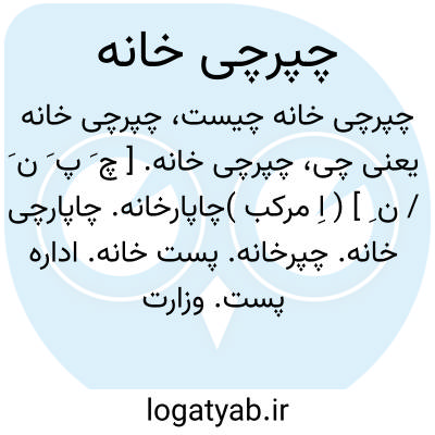 چپرچی خانه. [ چ َ پ َ ن َ / ن ِ ] ( اِ مرکب )چاپارخانه. چاپارچی خانه. چپرخانه. پست خانه. اداره پست. وزارت پست. رجوع به چاپارخانه و چپرخانه شود.