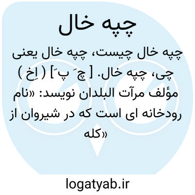 چپه خال. [ چ َ پ َ] ( اِخ ) مؤلف مرآت البلدان نویسد: «نام رودخانه ای است که در شیروان از «کله خال » جدا شده، از پائین نوشهر بسمت مشرق میرود و پس از گذشتن از شمال محمودآبادبه بحر خزر میریزد». ( از مرآت البلدان ج 4 ص 213 ).