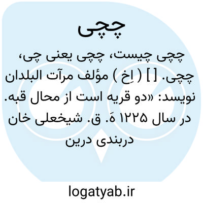 چچی. [ ] ( اِخ ) مؤلف مرآت البلدان نویسد: «دو قریه است از محال قبه. در سال 1225 هَ. ق. شیخعلی خان دربندی درین محل از قشون روس شکست خورد». ( از مرآت البلدان ج 4 ص 214 ).
