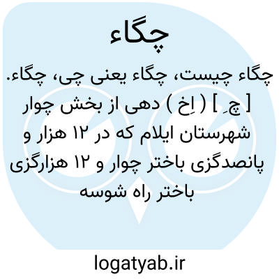 چگاء. [ چ ِ ] ( اِخ ) دهی از بخش چوار شهرستان ایلام که در 12 هزار و پانصدگزی باختر چوار و 12 هزارگزی باختر راه شوسه ایلام به شاه آباد واقع است و 50 تن سکنه دارد. آبش از قنات. محصولش غلات. شغل اهالی زراعت و گله داری وراهش مالرو است. ( از فرهنگ جغرافیایی ایران ج 5 ).