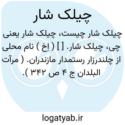 لغت نامه دهخدا چیلک شار. [ ] ( اِخ ) نام محلی از چلندرزار رستمدار مازندران. ( مرآت البلدان ج 4 ص 342 ).
