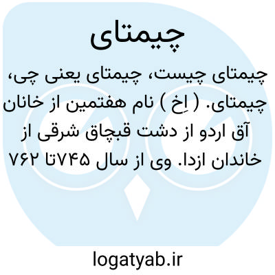 چیمتای. ( اِخ ) نام هفتمین از خانان آق اردو از دشت قبچاق شرقی از خاندان ازدا. وی از سال 745تا 762 هَ.ق. فرمانروائی داشت. ( یادداشت مؤلف ).