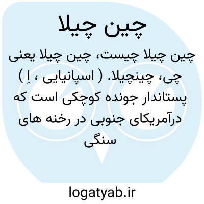 چینچیلا. ( اسپانیایی، اِ ) پستاندار جونده کوچکی است که درآمریکای جنوبی در رخنه های سنگی کوههای آند در بولیوی و پرو و شیلی زندگی میکند، و نام علمی آن Clinlilla laniger است. پوست نرم خاکستری آن یکی از گرانبهاترین پوستهای قیمتی است. ( از دائرة المعارف فارسی ).