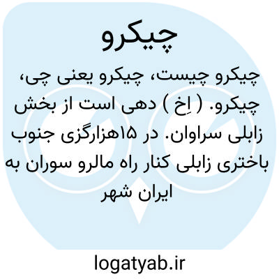 چیکرو. ( اِخ ) دهی است از بخش زابلی سراوان. در 15هزارگزی جنوب باختری زابلی کنار راه مالرو سوران به ایران شهر واقع است و 100 تن سکنه دارد. از قنات آبیاری میشود. ( از فرهنگ جغرافیایی ایران ج 8 ).