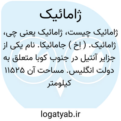 ژامائیک. ( اِخ ) جامائیکا. نام یکی از جزایر آنتیل در جنوب کوبا متعلق به دولت انگلیس. مساحت آن 11525 کیلومتر و دارای قریب 1121000 تن سکنه. مرکز آن کینگستون و محصولات عمده آن شکر و موز و رُم است.