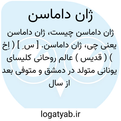 ژان داماسن. [ س ِ ] ( اِخ ) ( قدیس ) عالم روحانی کلیسای یونانی متولد در دمشق و متوفی بعد از سال 754 م. وی با بدعت تصویرپرستی مبارزه میکرد. ذکران او ششم مارس است.