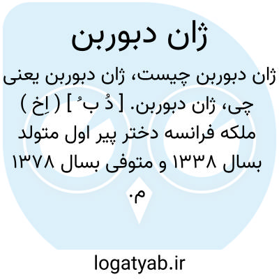 ژان دبوربن. [ دُ ب ُ ] ( اِخ ) ملکه فرانسه دختر پیر اول متولد بسال 1338 و متوفی بسال 1378 م.