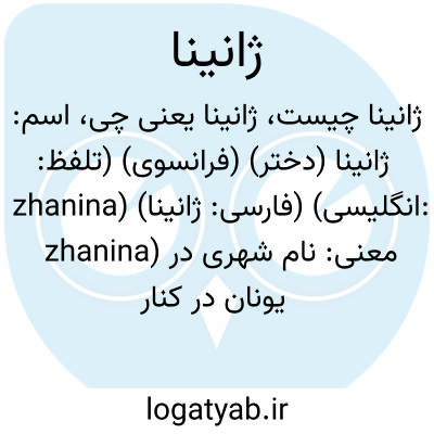 فرهنگ اسم ها اسم: ژانینا (دختر) (فرانسوی) (تلفظ: zhanina) (فارسی: ژانینا) (انگلیسی: zhanina) معنی: نام شهری در یونان در کنار دریاچه ای به همین نام
