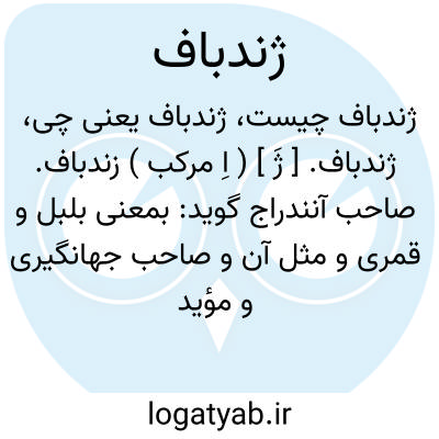 ژندباف. [ ژَ ] ( اِ مرکب ) زندباف. صاحب آنندراج گوید: بمعنی بلبل و قمری و مثل آن و صاحب جهانگیری و مؤید به زای عربی نوشته و کسی وجه تسمیه این بیان نکرده و شاید که چون پرهای بلبل و قمری و فاخته و کبک و کبوتر و دراج چندان خوش رنگ و لطیف نباشد ژندباف میگفته باشند. رجوع به زندباف شود -انتهی. و این گفته بر اساسی نیست.